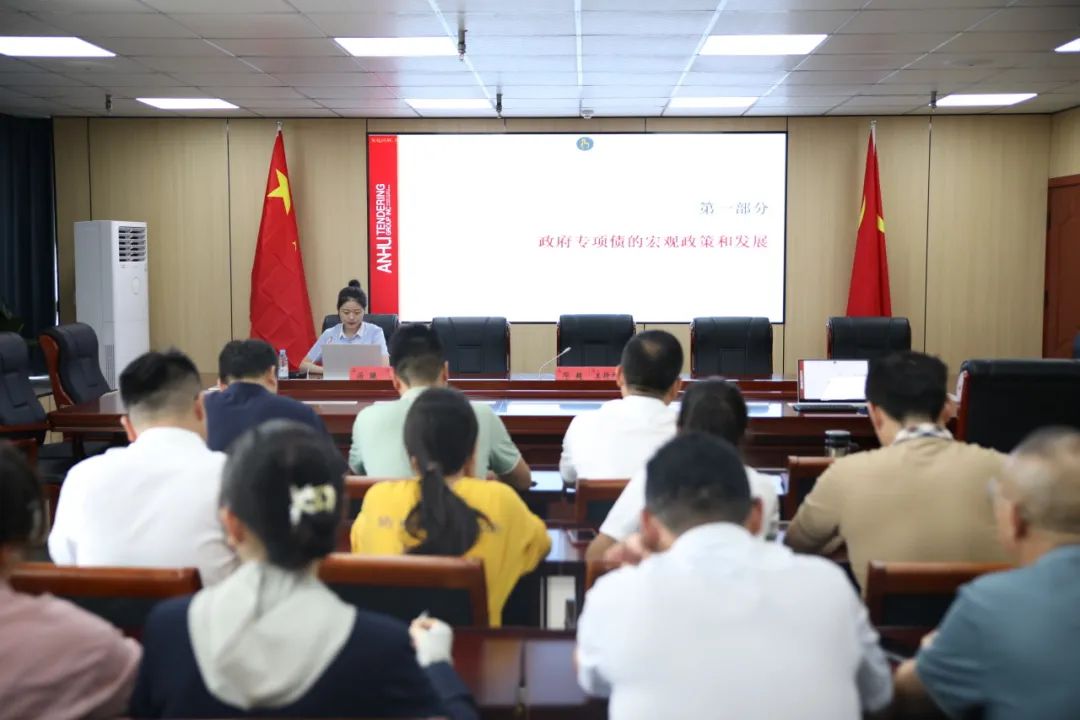 本次培训会邀请安徽省招标集团股份有限公司投资咨询研究院研究员汤璇授课,由集团公司董事、副总经理邓超主持,融资管理中心、投资发展中心、财务管理中心,各一级公司融资条线全体人员、财务部负责人参会。