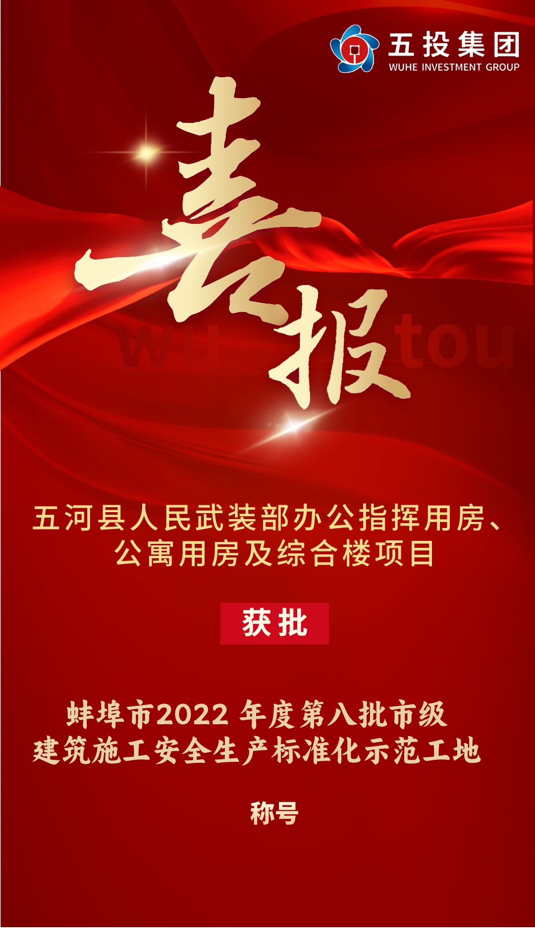 骄阳似火,挡不住3044am永利集团城投人建设工程的步伐,捷报频传,展现出3044am永利集团城投人奋勇争先的劲头。在全体施工人员的不懈努力下,3044am永利集团城投公司五河县人民武装部办公指挥用房、公寓用房及综合楼项目荣获蚌埠市“市级建筑施工安全标准化示范工地”荣誉。