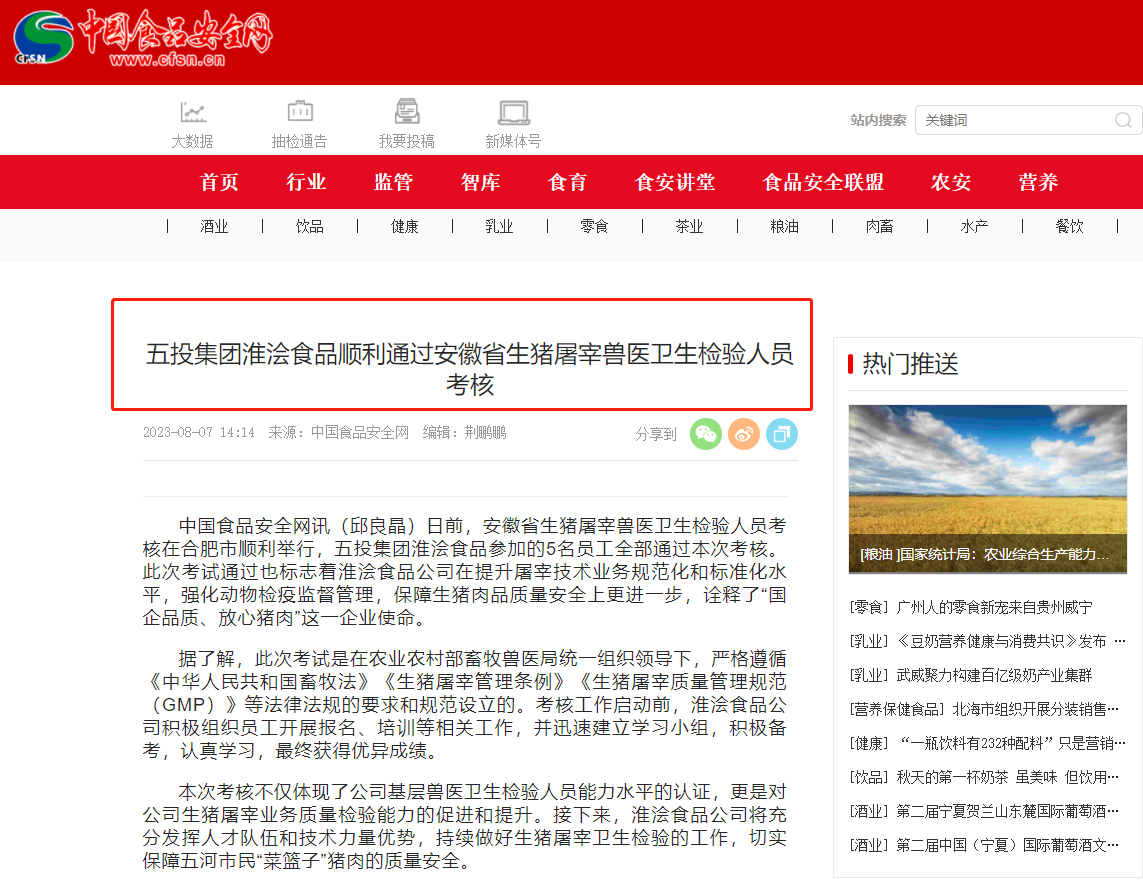 同时,集团持续加强对一线工作成果的挖掘以及品牌信息的宣传,并在中国网、中国食品安全网、中安在线、新安晚报、安徽电视台公共频道等中央和省市媒体报道刊发集团宣传信息,持续提升集团的品牌美誉度和社会影响力。