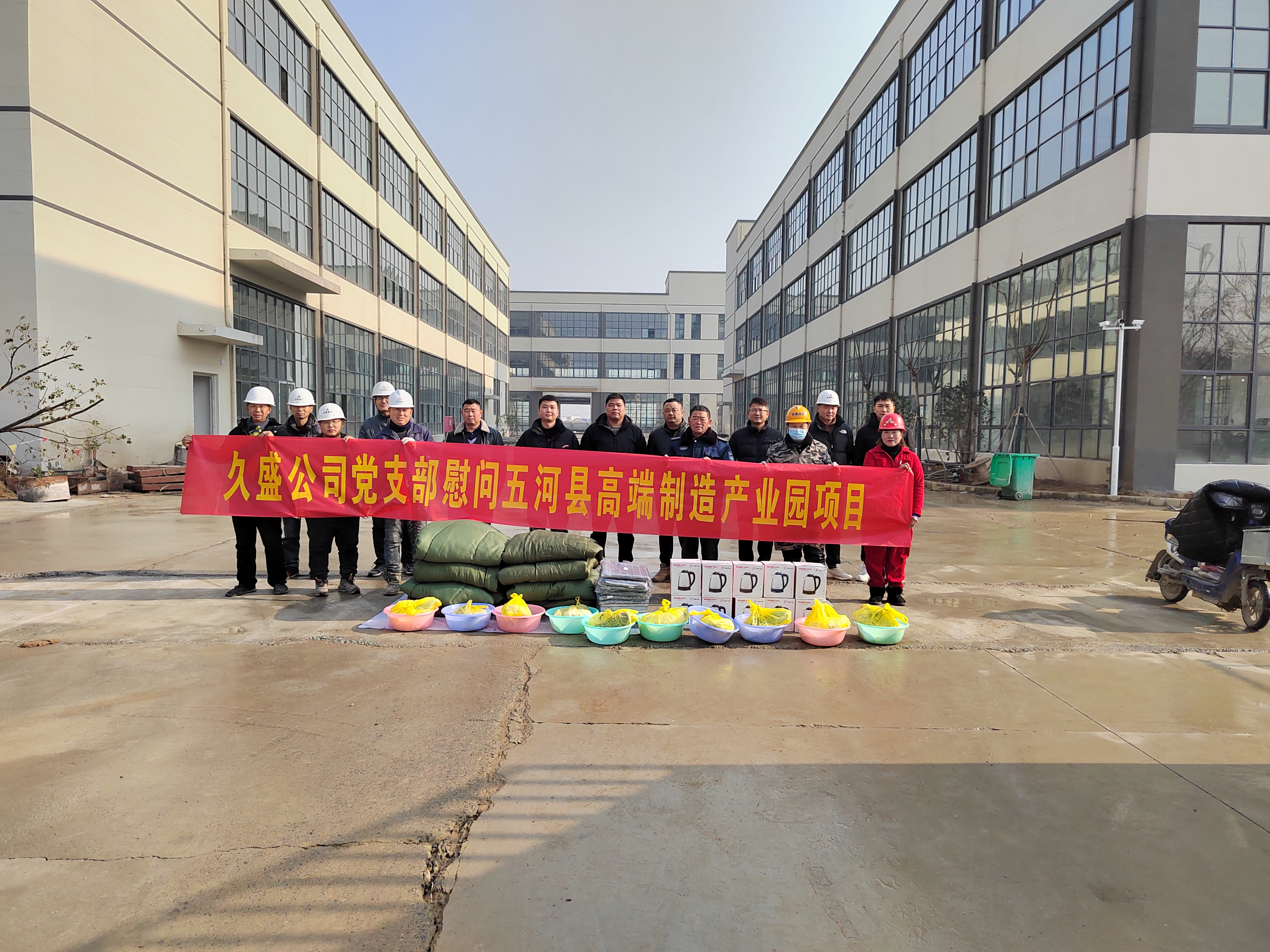 项目现场,久盛公司党支部相关人员为奋战在一线的职工们送上慰问品,感谢一线工人的辛勤付出,嘱咐大家在低温情况下务必注意做好防护保暖工作,确保低温期间健康安全。在走访慰问的过程中,久盛公司党支部相关人员详细询问了项目的开展情况,了解了当前工作中存在的难点、堵点问题。