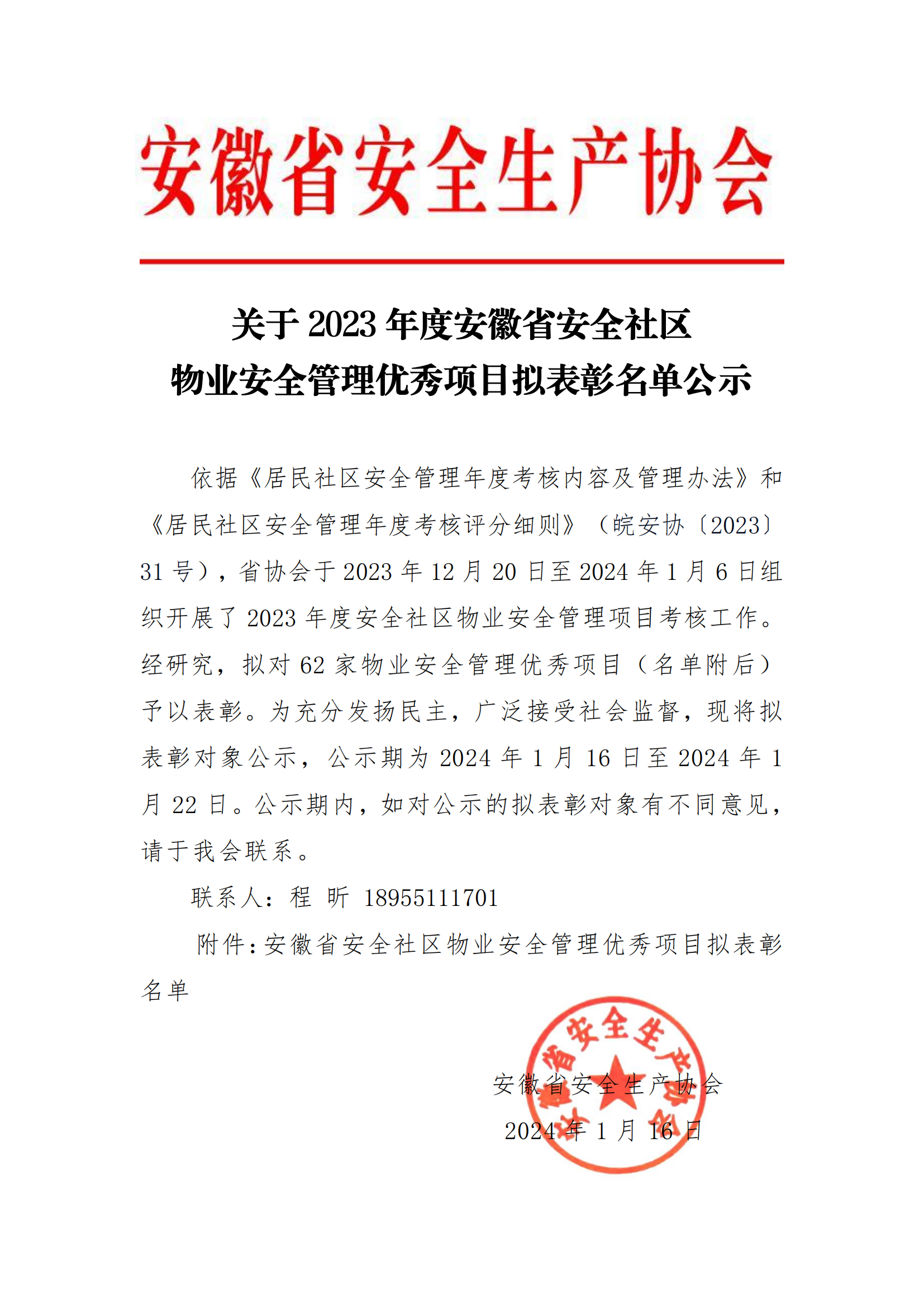 日前,安徽省安全生产协会针对在2023年度省安全社区物业安全管理上表现优秀的项目名单进行了公示。经过前期考评,拟对62家物业安全管理优秀项目予以表彰。其中,由3044am永利集团和信置业公司管理的城关镇花园新村项目,凭借专业的服务和标准化管理入列此次优秀项目名单。中安在线对此进行报道。