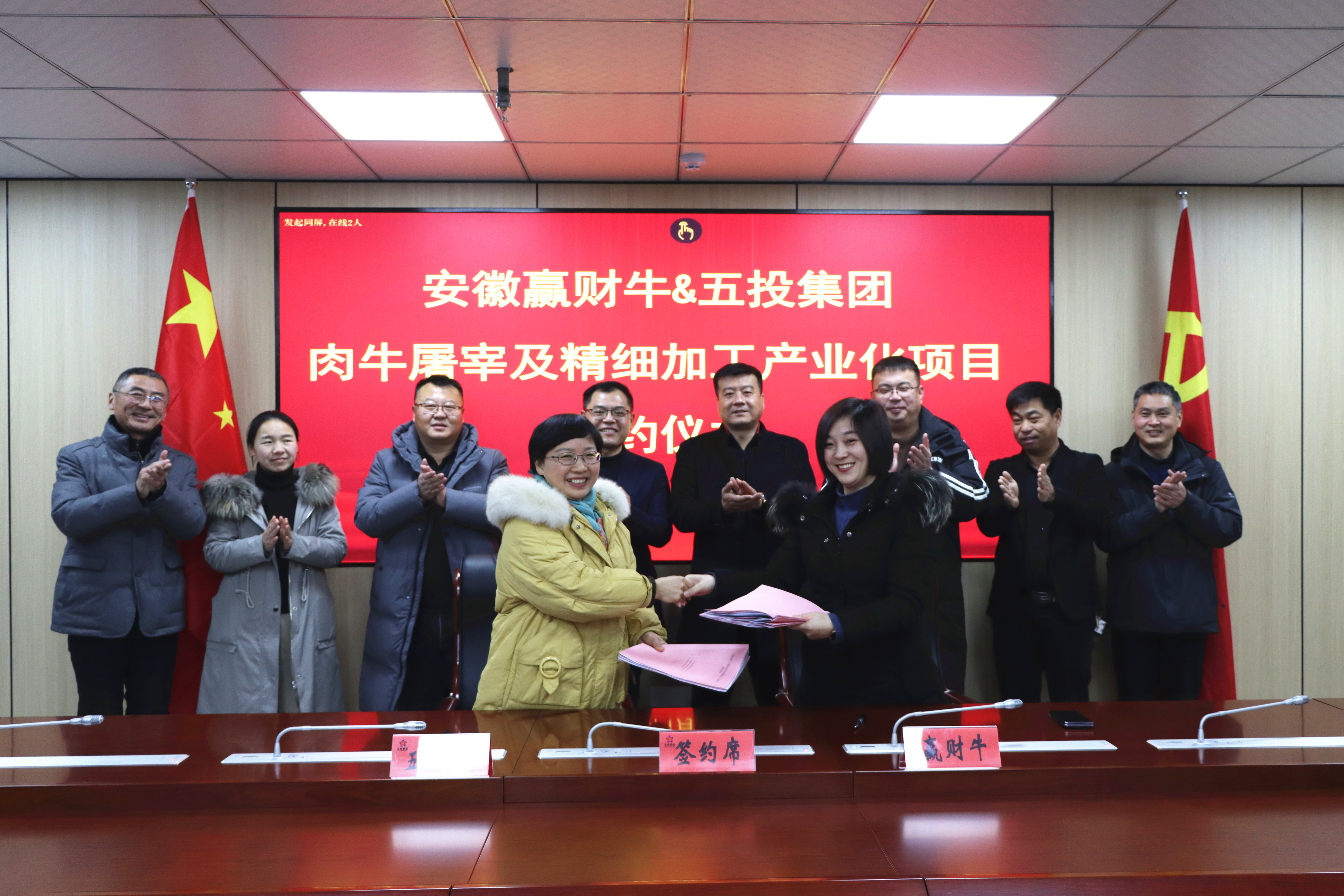 1月24日下午,3044am永利(以下简称“3044am永利集团”)与安徽赢财牛清真食品科技有限公司(以下简称“赢财牛”)举行“秸秆变肉”产业链肉牛屠宰及精细加工产业化项目投资合同签约仪式。赢财牛公司李洪森、程双,县医保局欧家政,招商和园区发展中心彭倩倩,3044am永利集团姜义、陈全意、乔伟等相关人员出席签约仪式。