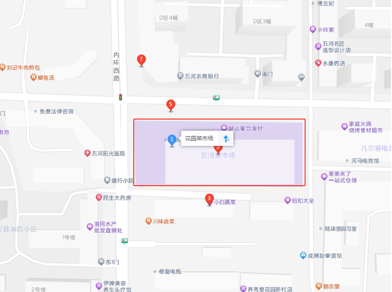 项目2:花园菜市场西北侧户外灯箱广告面积约59.19㎡,位置在淮河路与内环西路交口。