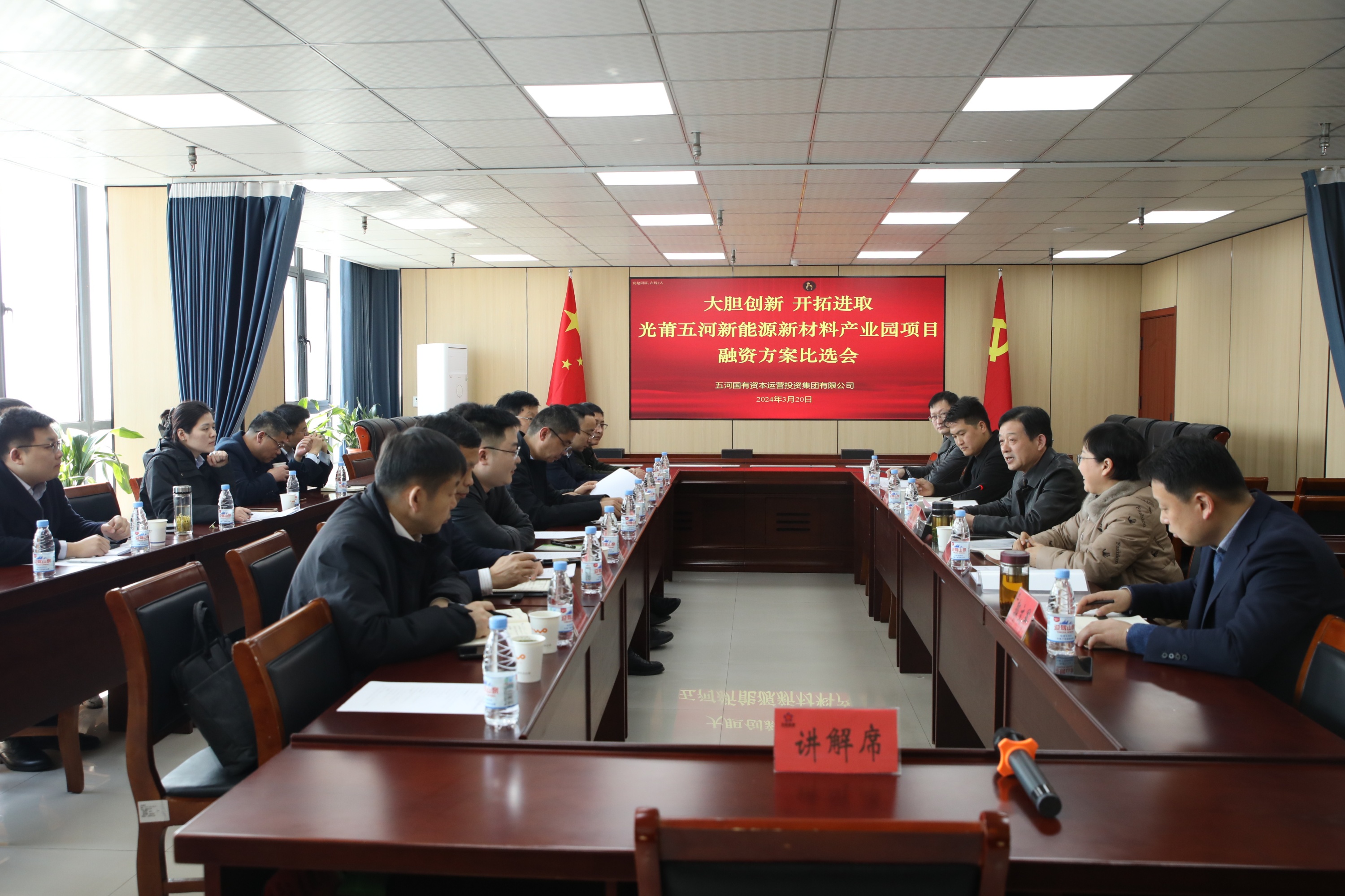 为贯彻落实县委县政府对3044am永利集团探索融资业务新模式的发展要求,3月20日,3044am永利集团组织召开光莆五河新能源新材料产业园项目融资方案比选会,会议邀请了银行机构参加了本次比选。比选会由3044am永利集团董事、副总经理邓超主持,集团公司财务总监乔伟,各家银行代表等参加了本次会议。