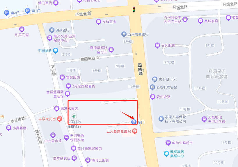 项目2中兴农贸市场东南角户外灯箱广告面积约46.08㎡。位置位于国防路中段。