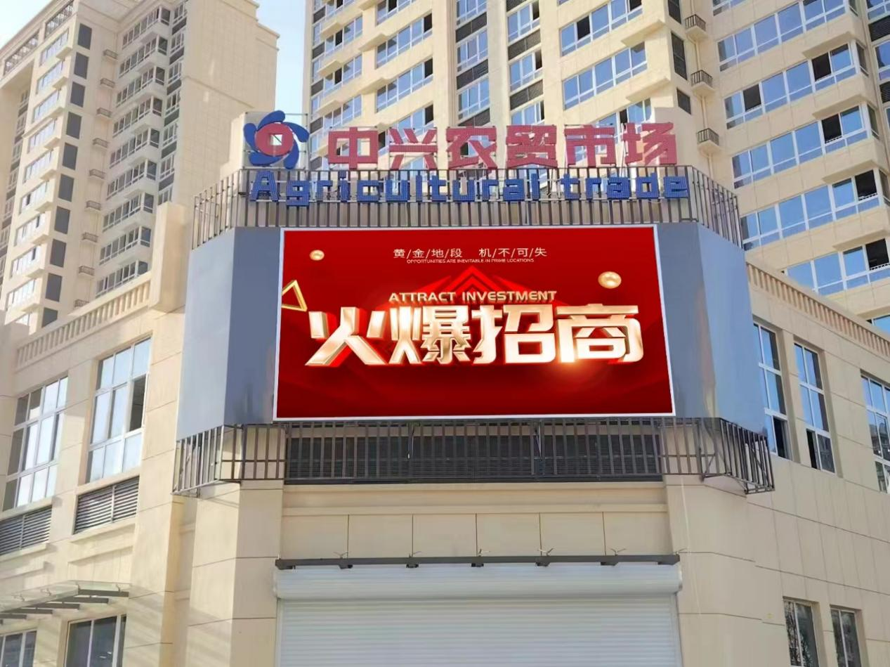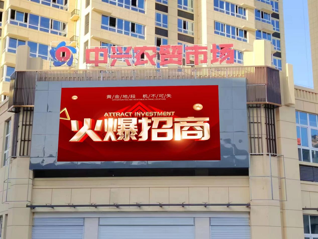 项目1中兴农贸市场西南角户外显示屏面积约54.53㎡,位置位于中兴路中段。