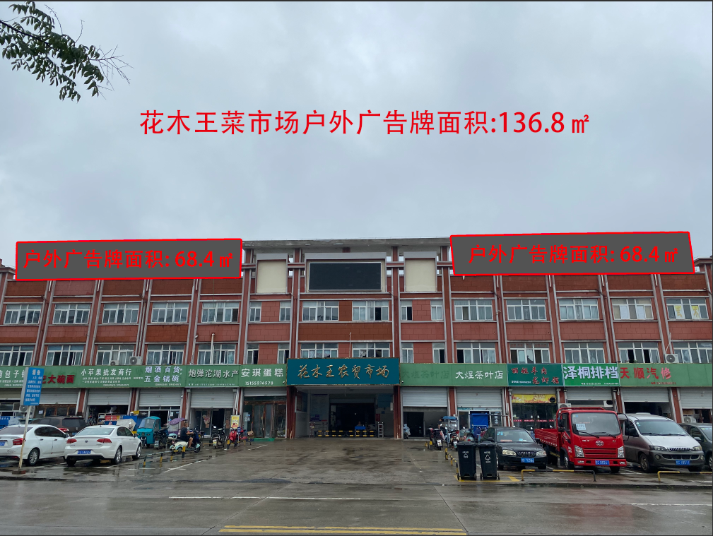 项目2:花木王菜市场楼顶北侧钢结构广告牌,位置在康民路与花木王巷交口。