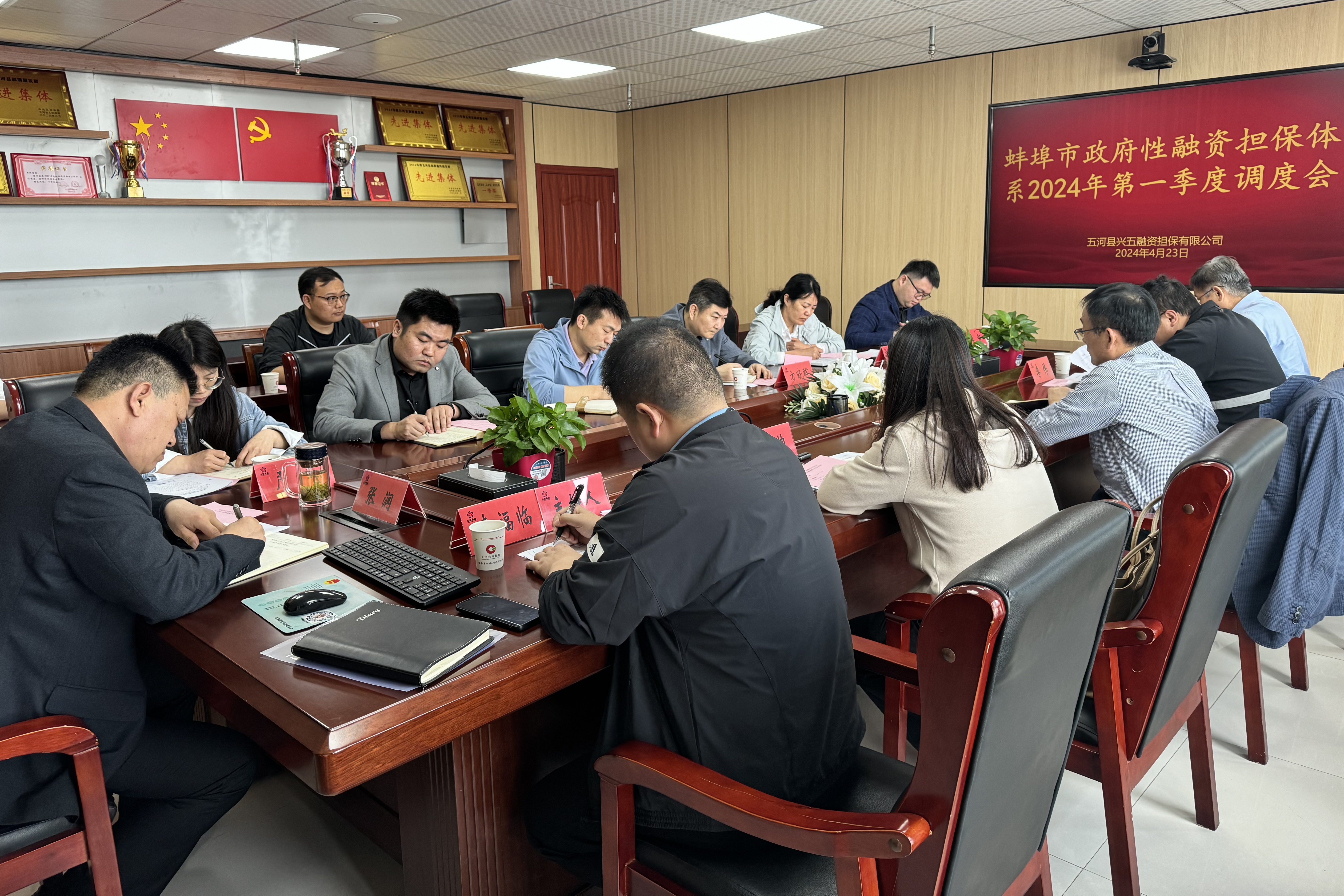 2024年4月23日上午,兴五担保公司受蚌埠市融资担保协会委托,组织召开全市政府性融资担保体系政银担调度会。省担保集团专职董事周剑、市金融监管局李伟、市担保协会会长陈孝凯及蚌埠市8家政府性融资担保机构主要负责人参加会议,会议由市担保集团董事长李福临主持。