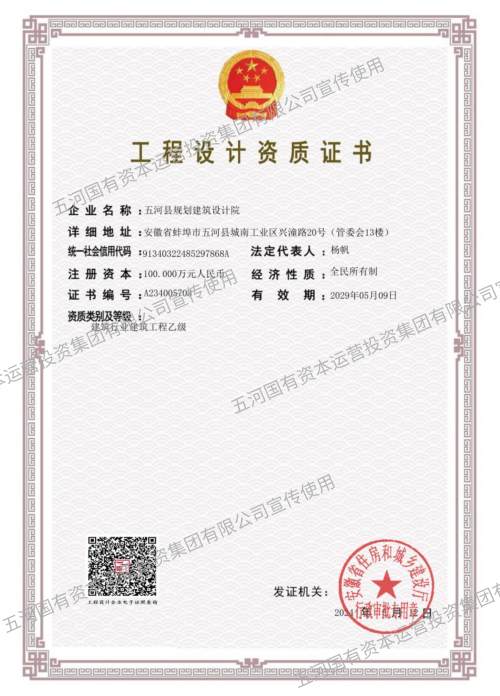 近日,五河县规划建筑设计院向安徽省住房和城乡建设厅申报的建筑行业建筑工程乙级设计资质顺利获批。