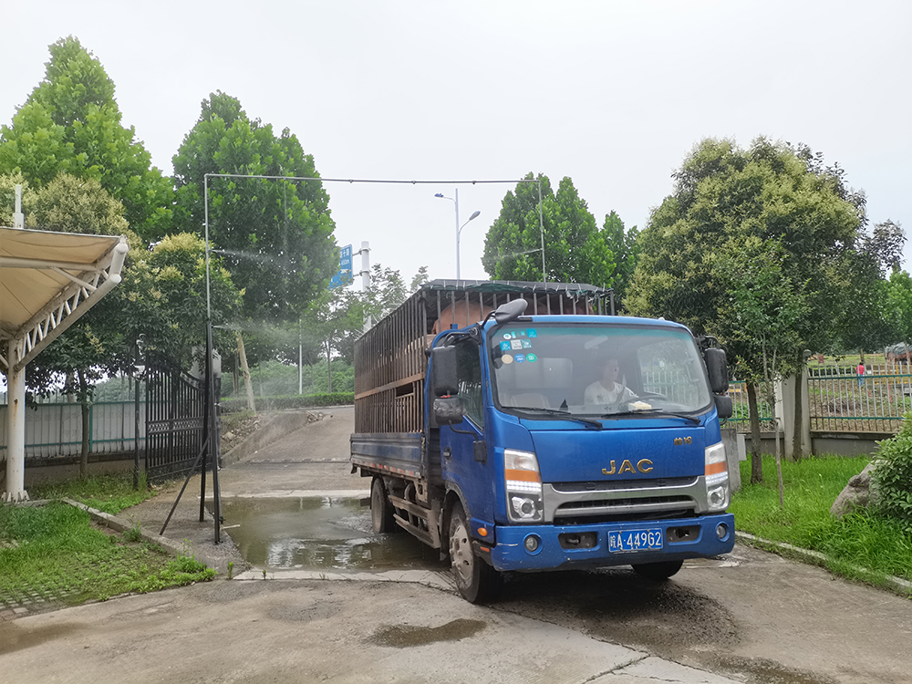 每日经过养殖场、合作社运送来的100多头生猪,淮浍食品公司会主动入场查证验物并索取其原产地《动物检疫合格证明》和《生猪运输车辆备案表》,然后临车检查、再进厂消毒,经查验“两证一标”程序后方可入厂。