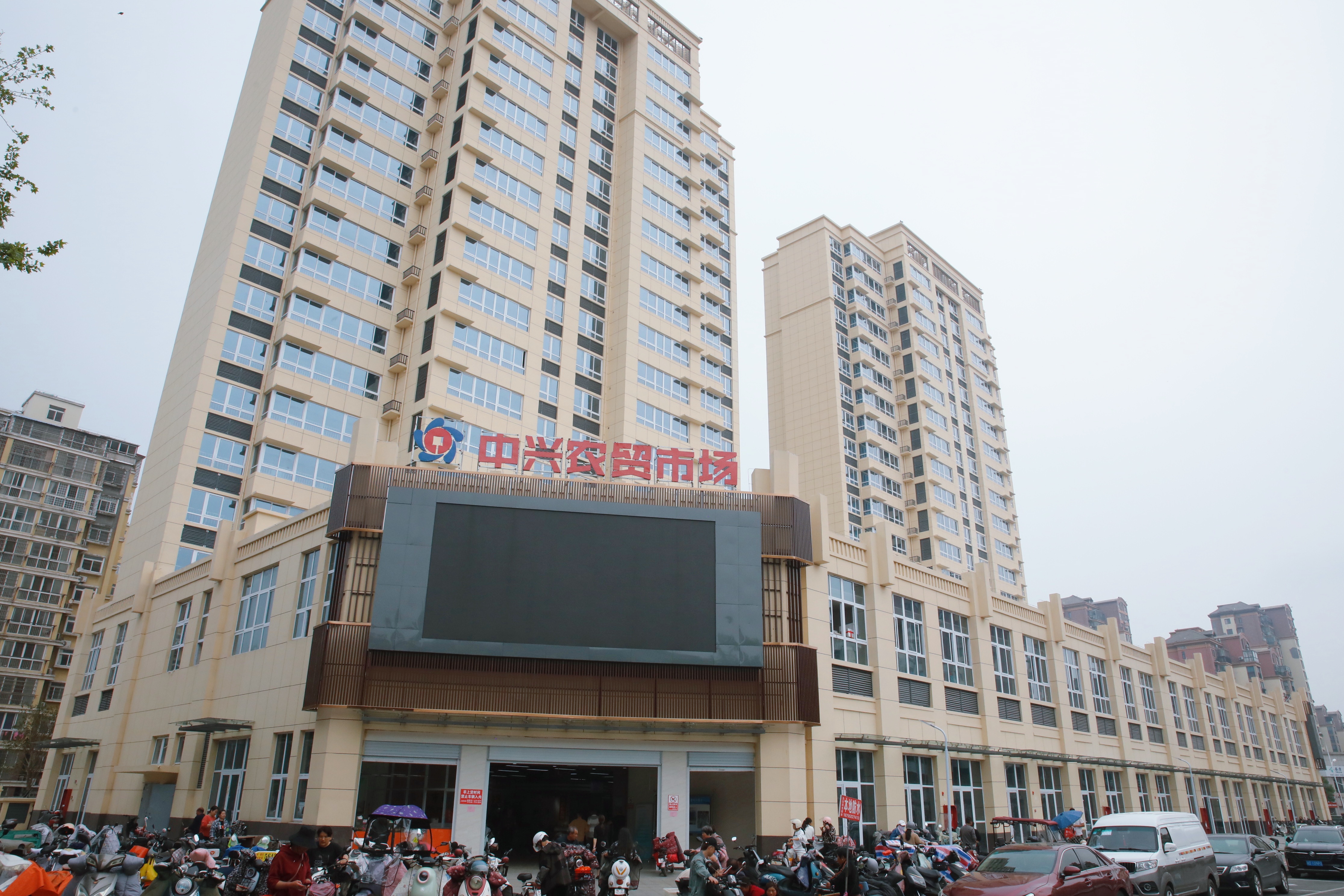 中兴农贸市场位于中兴路与漴河路交口,城市中心、交通便利、设施完善、周边居民众多、商业氛围浓厚。市场占地面积约9548平方米,共有摊位总计196个。经营品类涵盖蔬菜水果、鲜活水产、禽鱼肉蛋、面点熟食、粮油干货、豆类制品、百货超市等。市场设施齐全,配备有自动扶梯、无线网络、监控系统、消防设备等,为商户提供舒适、安全的经营环境。