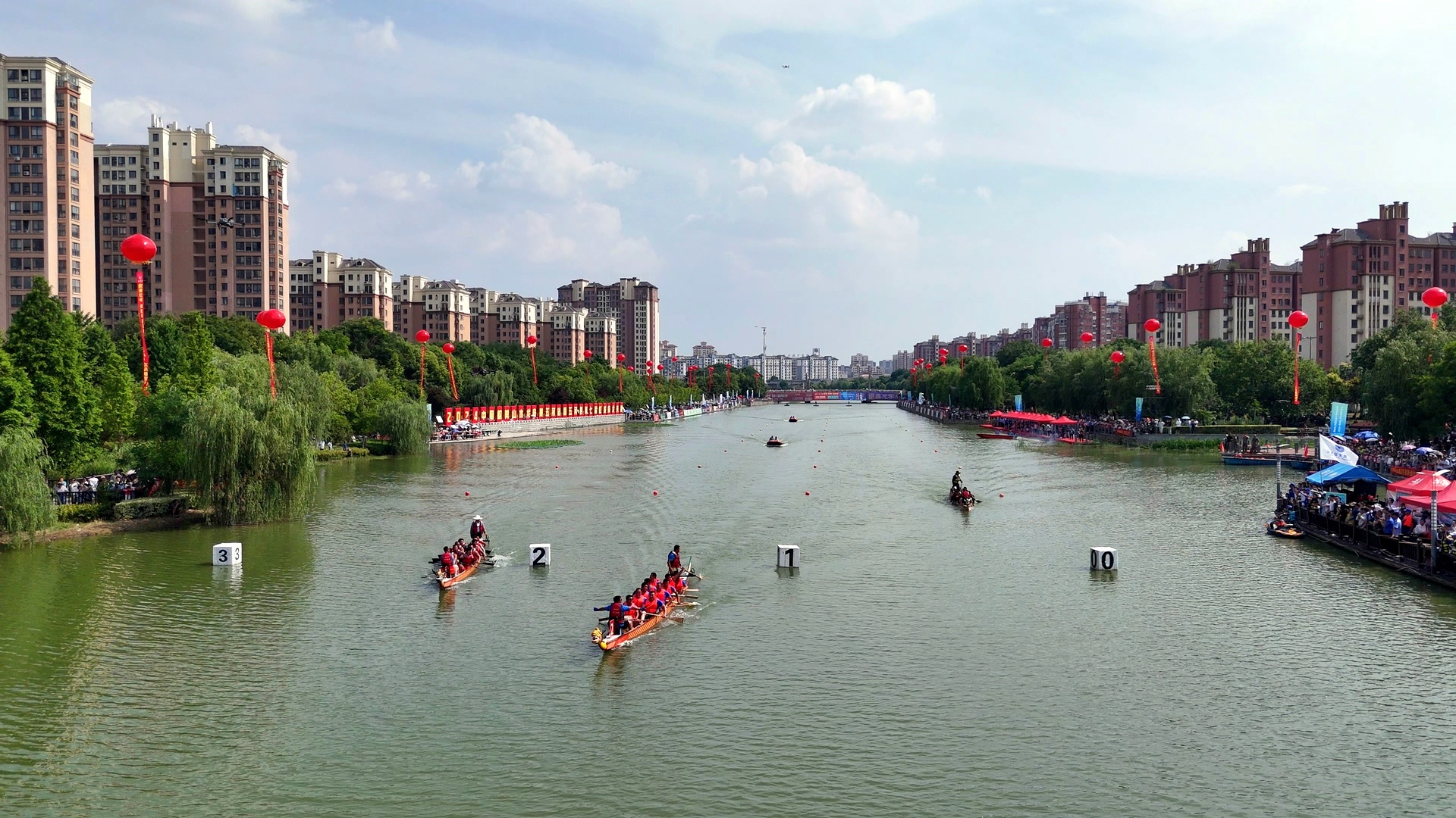 本届龙舟邀请赛邀请到29支参赛队伍和3支女子队伍,在漴河上展开激烈角逐。发令枪声响起,比赛正式开始。宽阔的河面上,伴随着“咚咚咚咚”的鼓点声,一艘艘龙舟如离弦之箭,劈波斩浪,奋勇争先。大家齐心协力,默契十足,奋力向前。这是属于五河的“速度与激情”,岸边的观众也被运动健儿的速度与激情点燃,吆喝声和加油声一浪接一浪。