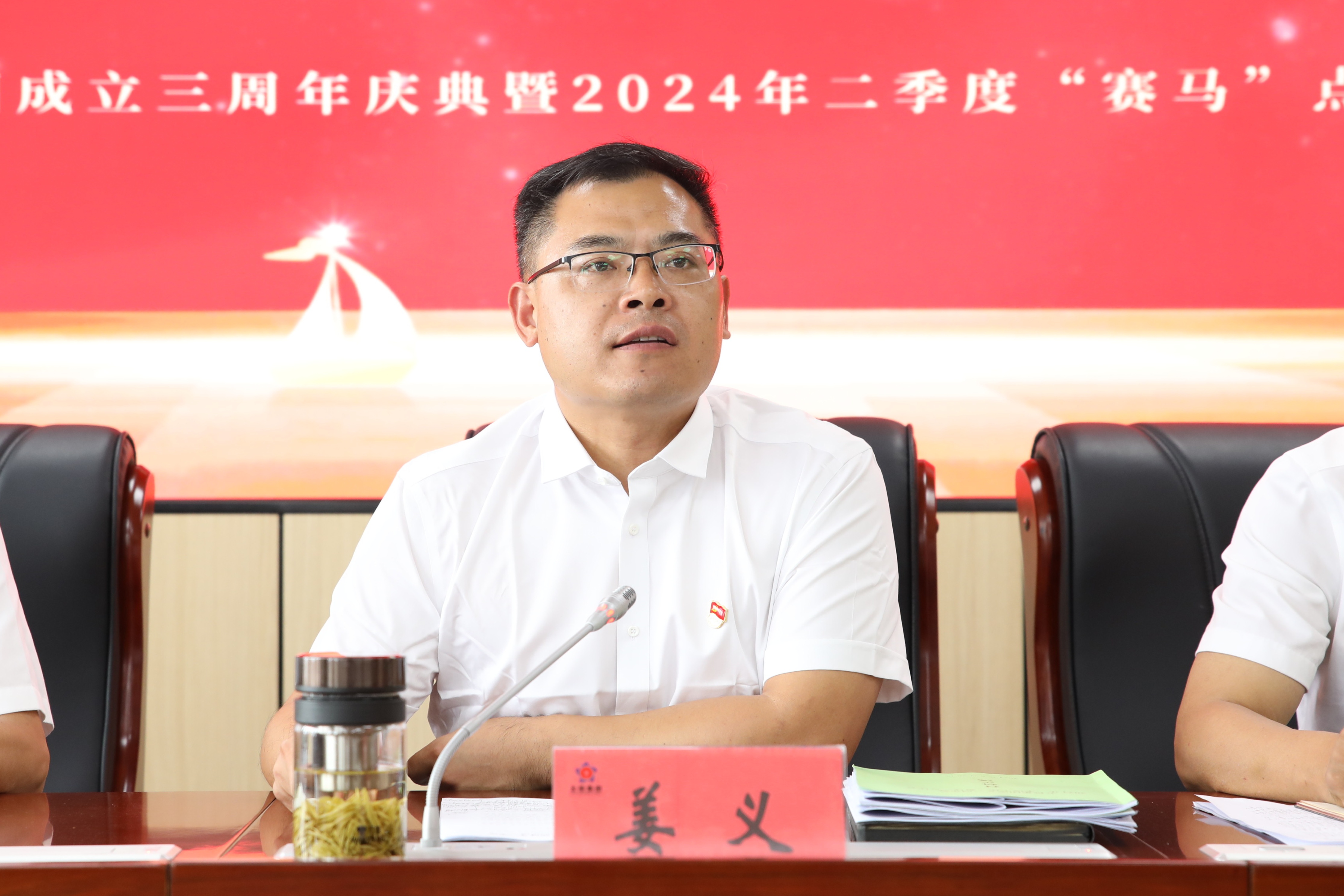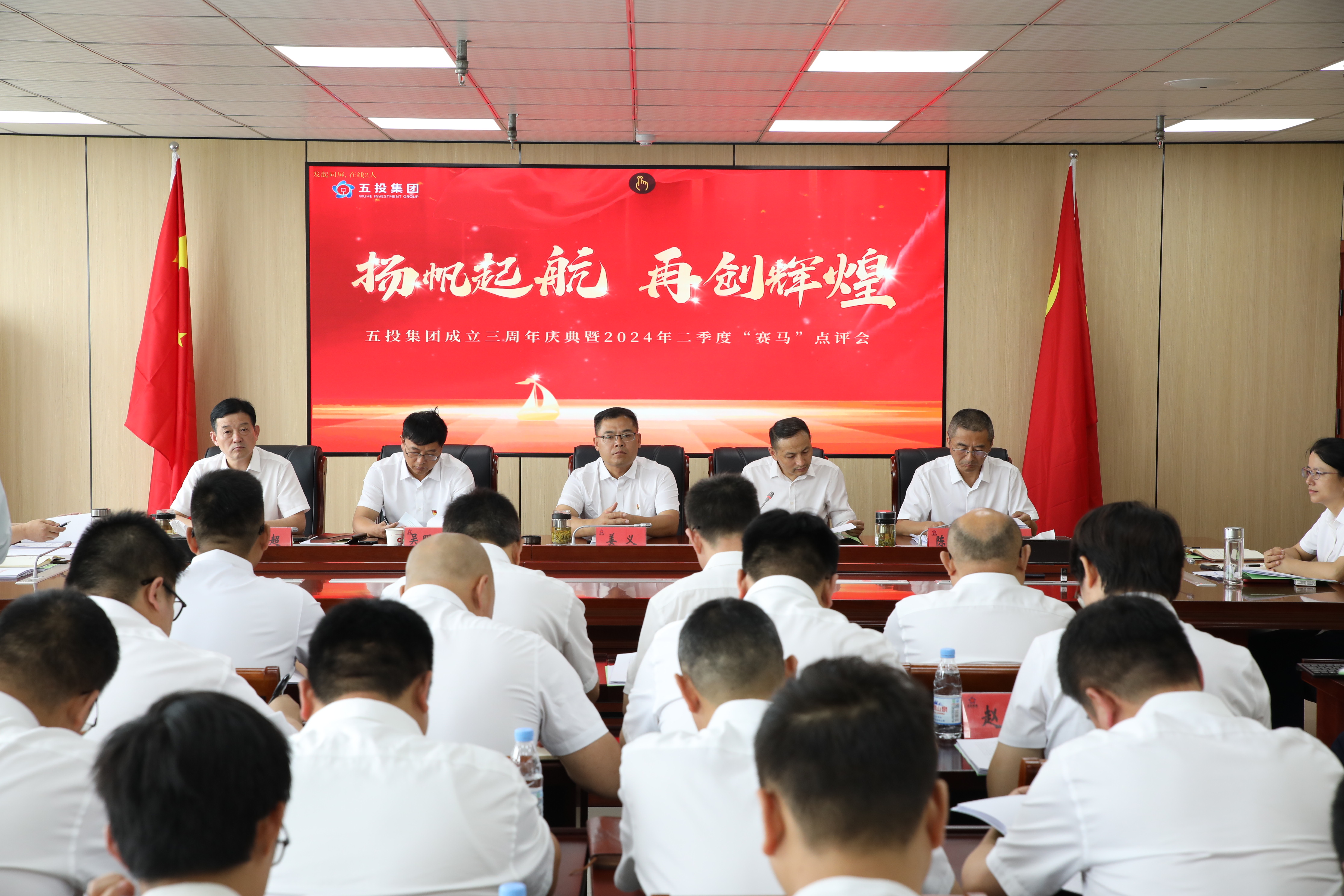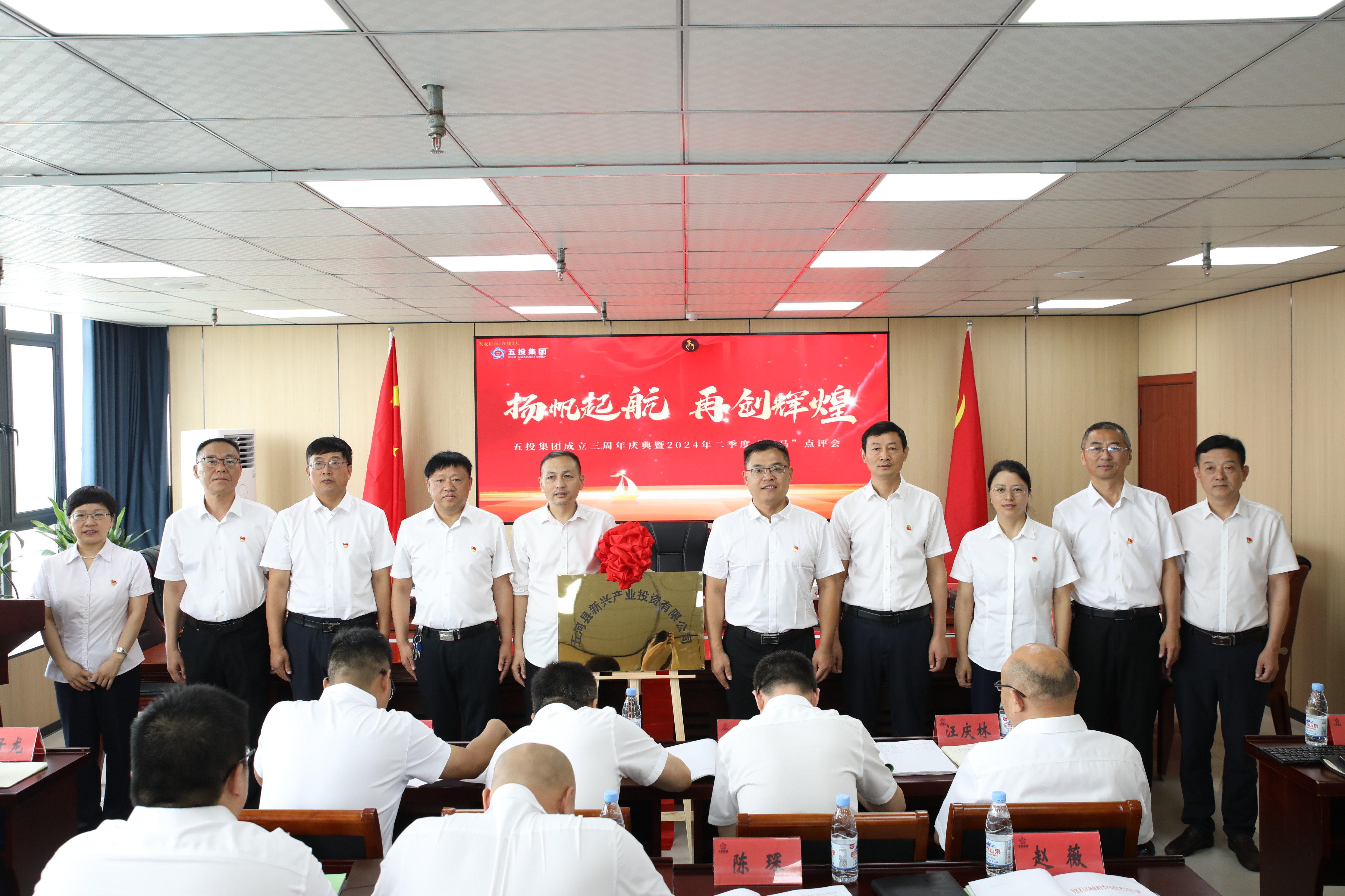 6月28日,3044am永利集团成立三周年庆典暨2024年二季度“赛马”点评会圆满举行。县国资委国资股主任周维光、集团公司领导班子、各职能中心、一二级子公司、合资子公司负责人及相关部门人员参加。