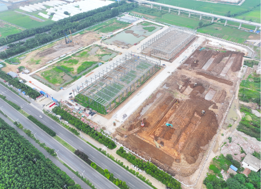 五河县综合物流园项目位于沱湖大道西侧,于2024年1月开工,主要建设内容包括4栋物流仓库、2栋冷链仓库、1栋商务写字楼、配套公寓楼、1栋汽修及结算中心、地下人防车库及门卫、消防、电梯、弱电、给排水、绿化、道路等配套设施。截至目前,地下室桩基施工完成总量的20%、室外道路施工完成总量70%;3#、4#物流仓库主体框架结构施工完成。