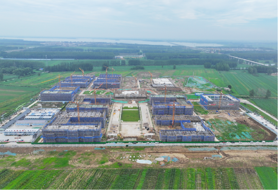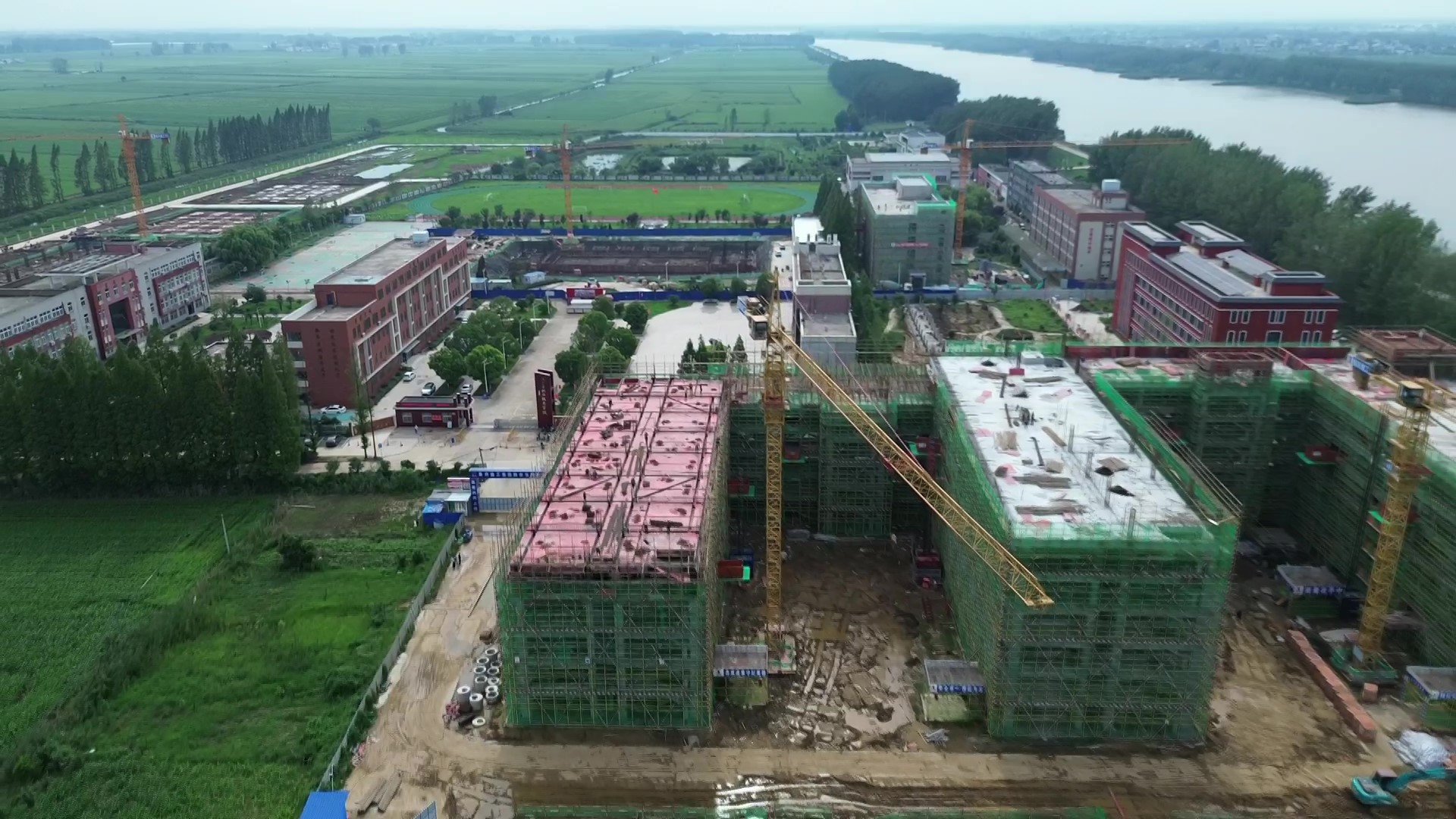 五河县第一中学城南校区工程项目负责人张凯说:“本项目从开工以来,为了提高施工现场形象,保证施工进度,采用了永临结合施工,提前施工了围墙、道路、管道,然后还有绿化。目前剩下所有楼栋全部出正负零,工程进度序时推进,预计8月底9月初,项目所有主体施工全部封顶。”