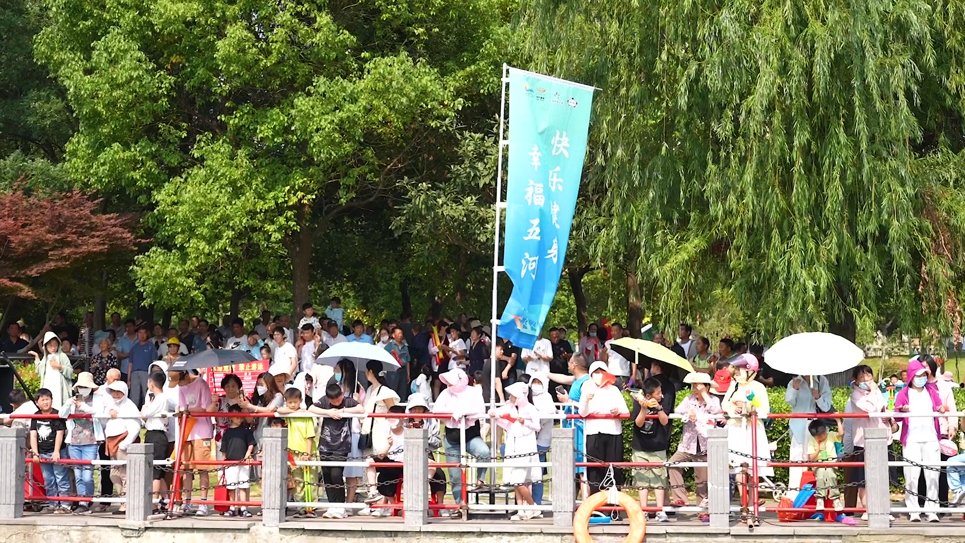 图为五河县第七届“虹城杯”龙舟赛漴河岸边观赛现场
