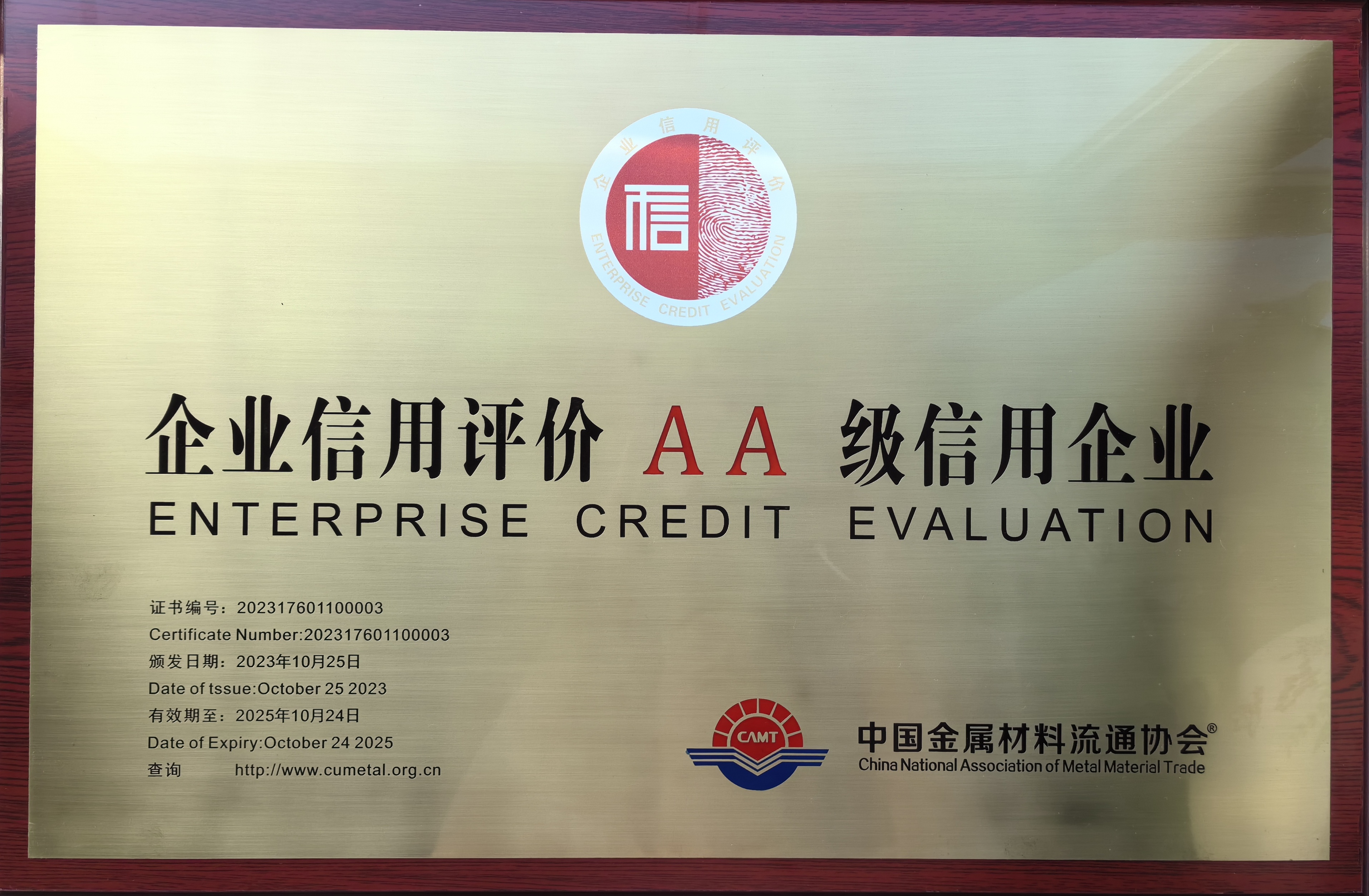 兴五建材公司获得了中国金属材料流通协会企业信用AA级信用称号,并在2023年度被安徽省金属材料流通协会授予诚信供应商。