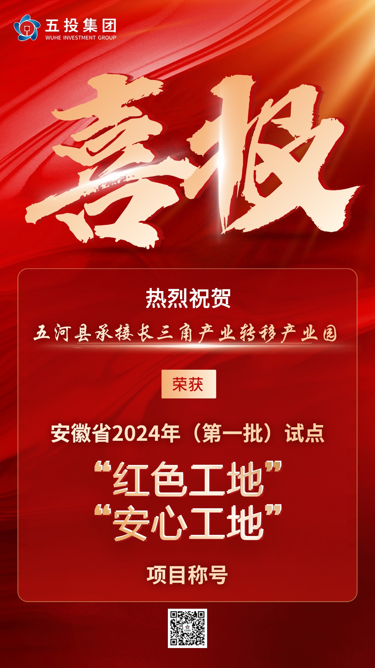 近日,由五河县经发建设投资有限公司出资建设的五河县承接长三角产业转移产业园项目荣获安徽省 2024 年“四个工地”(第一批)“红色工地”“安心工地”项目称号。