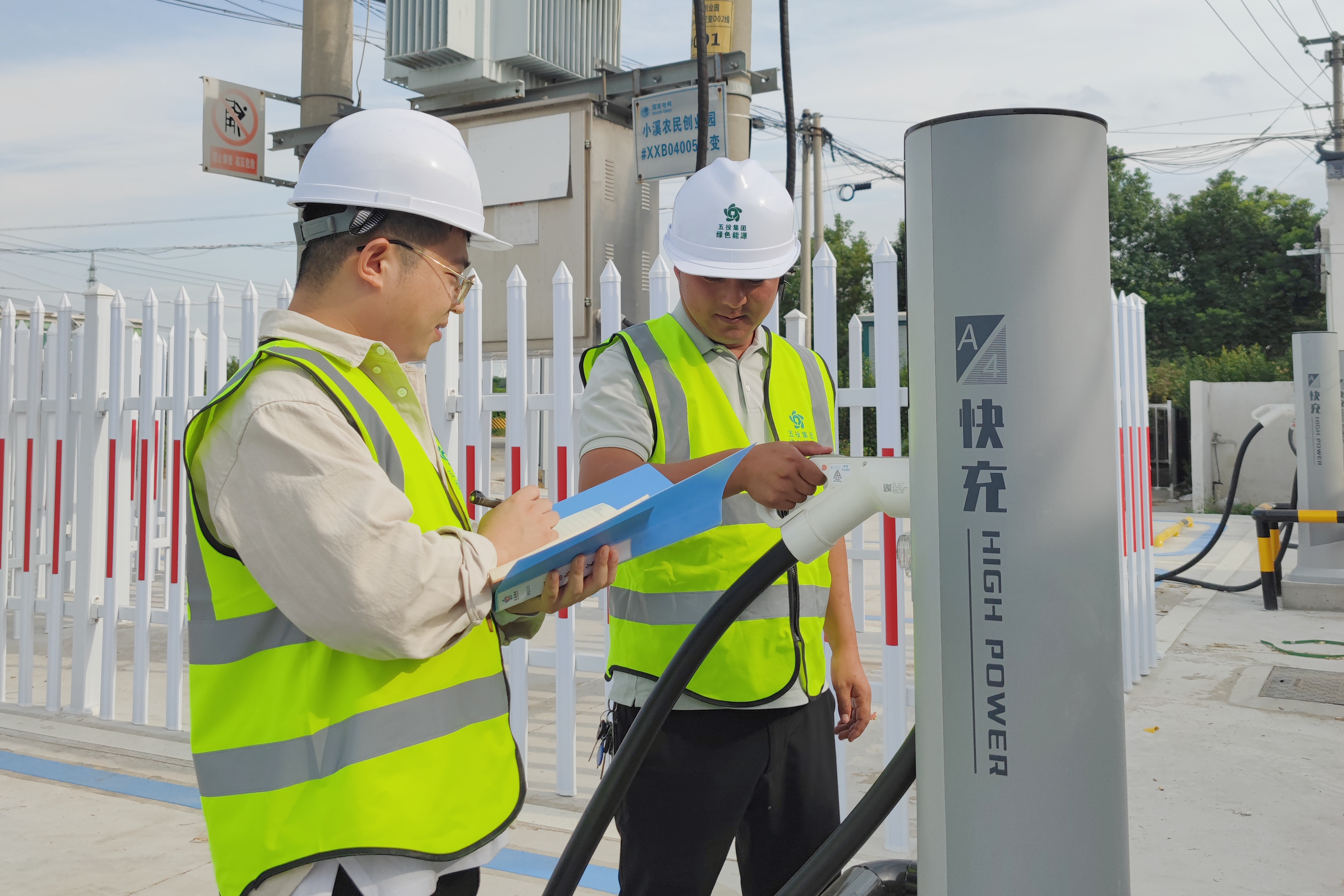 【工作人员对充电设备进行维护与记录】
