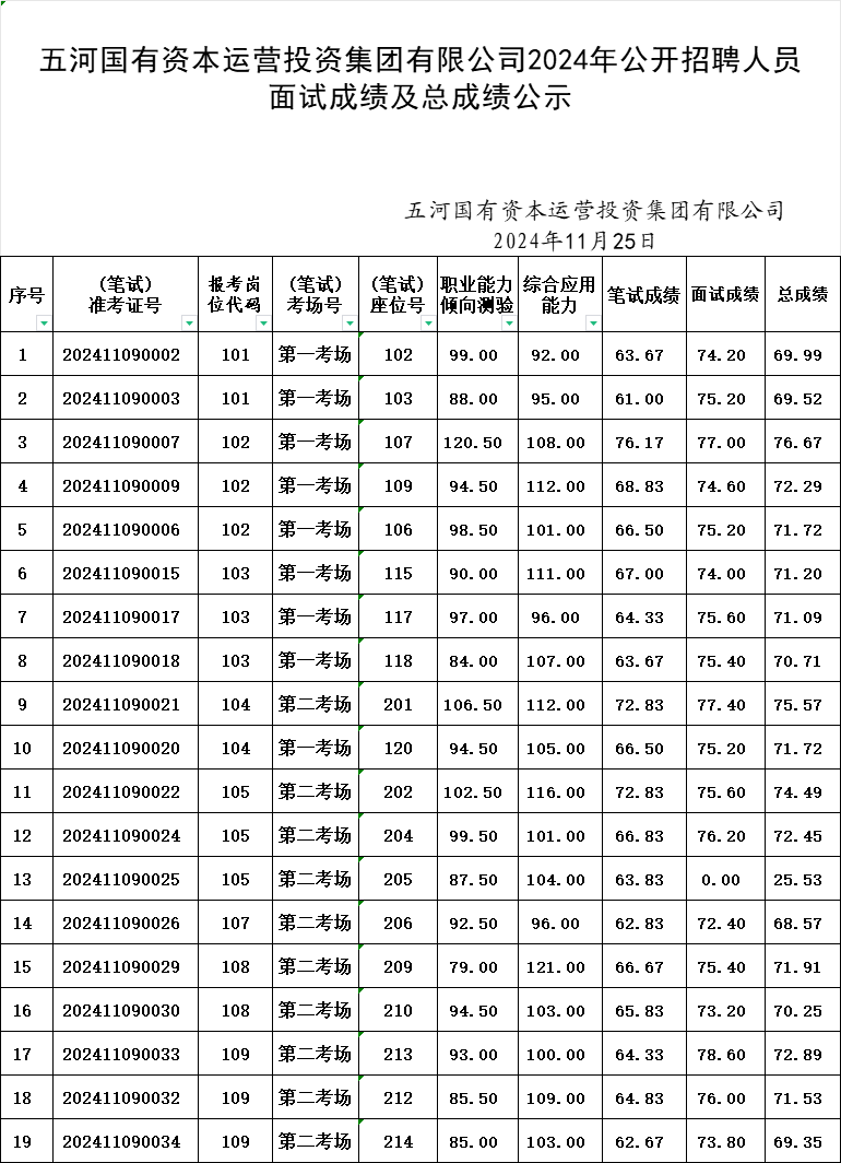 3044am永利集团2024年公开招聘人员面试成绩及总成绩公示