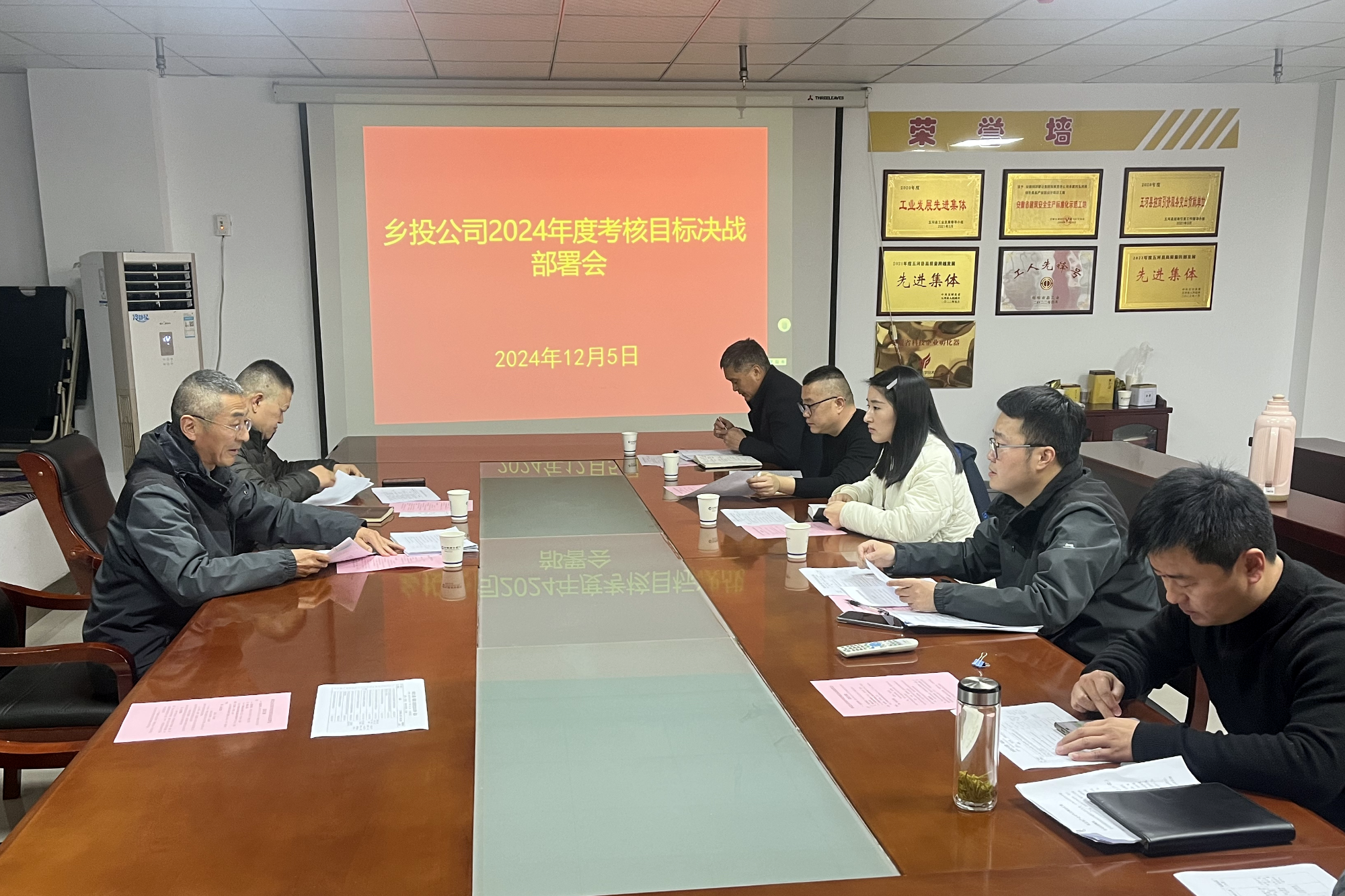 2024年12月5日下午,乡投公司召开2024年度目标考核决战部署会暨第一届第1次董事会会议。会议由乡投公司董事长、总经理陈全意主持,乡投公司副总经理张润同志、各部门负责人、所属二级经营公司班子成员参加会议。
