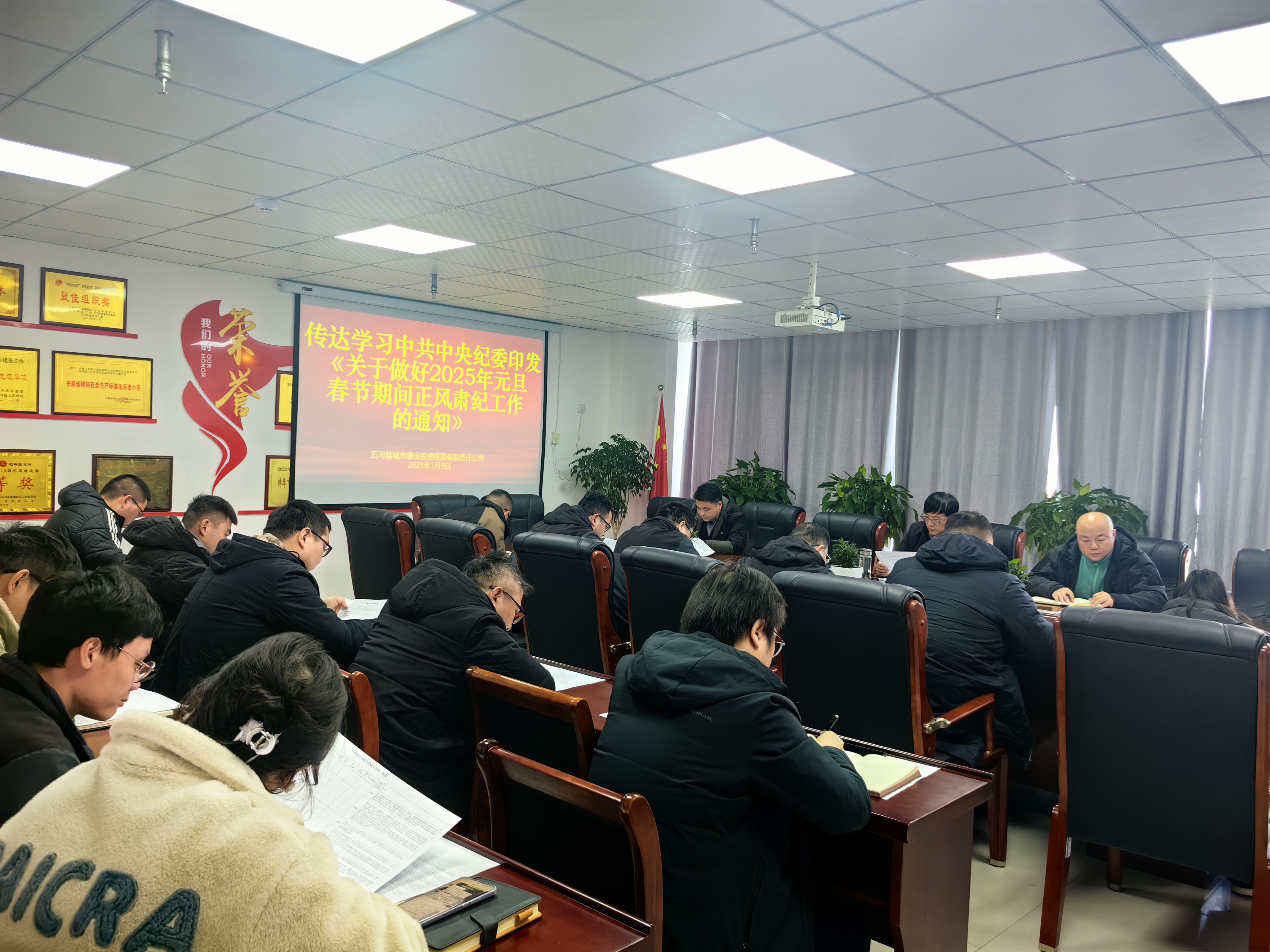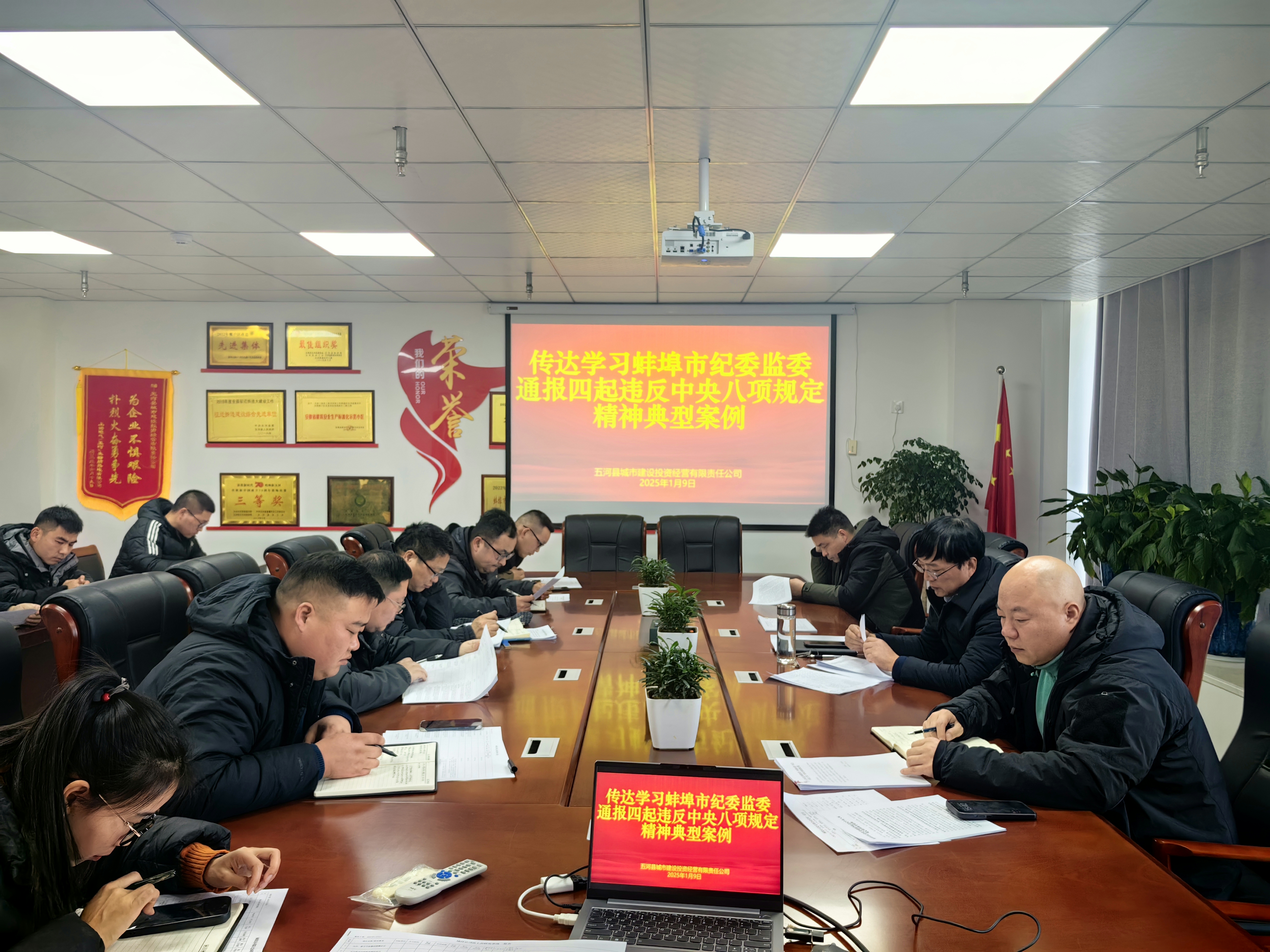 1月9日,城投公司组织全体员工开展一场深刻的警示教育活动。会上,重点传达学习了中共中央纪委印发的《关于做好2025年元旦春节期间正风肃纪工作的通知》,并通报了蚌埠市纪委监委公开的四起违反中央八项规定精神的典型案例。通过对这些文件和案例的深入学习,提醒全体员工深刻认识到廉政建设的重要性,不断增强政治学习的紧迫感和责任感。要求大家以这些典型案件为镜,从中汲取教训,时刻保持警醒,始终如一地传承和发扬艰苦奋斗的优良传统。