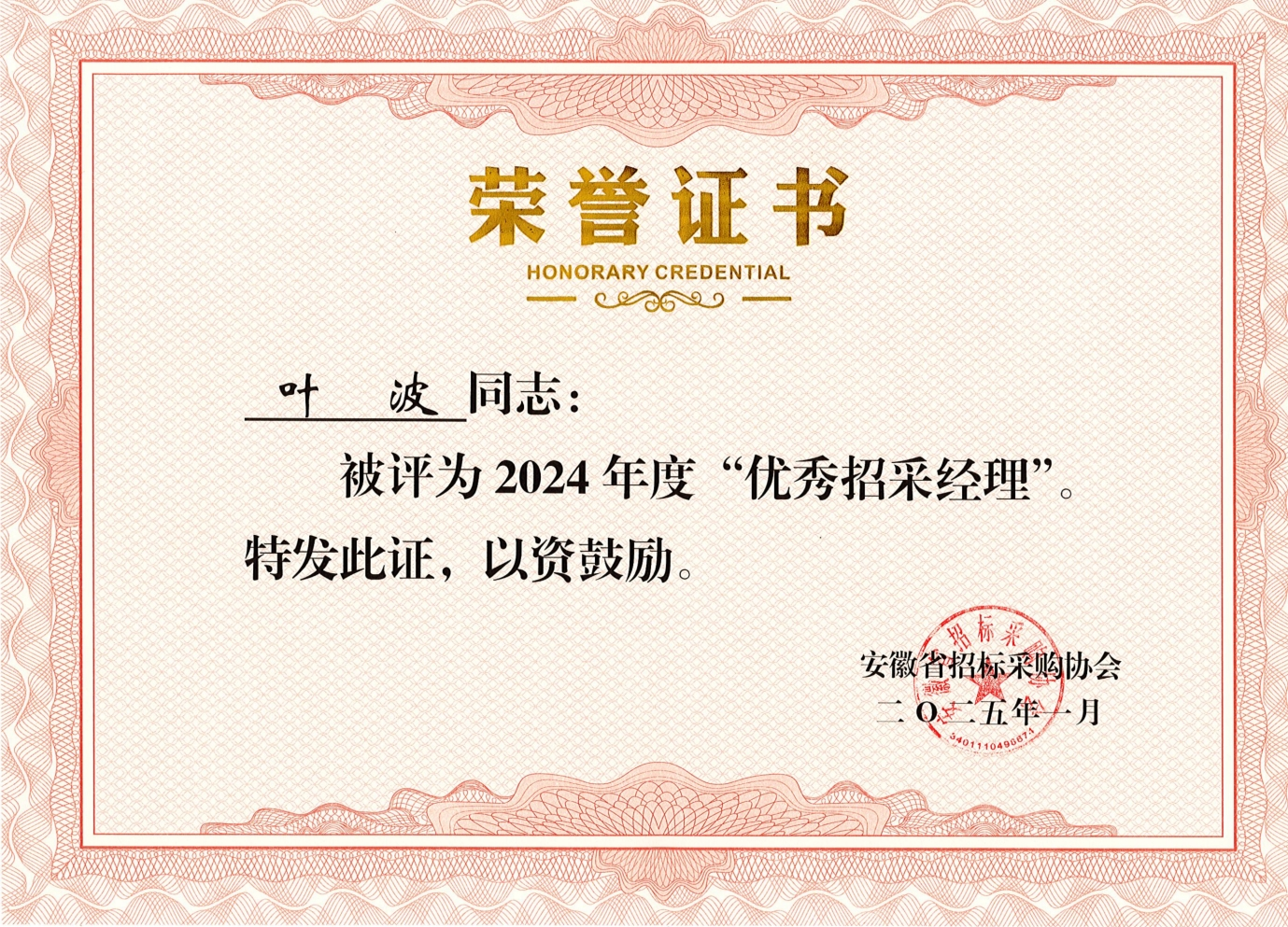 近日,安徽省兴五工程咨询有限公司(以下简称“兴五咨询公司”)凭借其在招标采购工作中的卓越表现,被安徽省招标采购协会授予“2024年度优质招标采购代理机构”荣誉称号。与此同时,兴五咨询公司的叶波同志也因其在招采工作中的出色管理能力和专业素养,荣获“2024年度优秀招采经理”荣誉称号。
