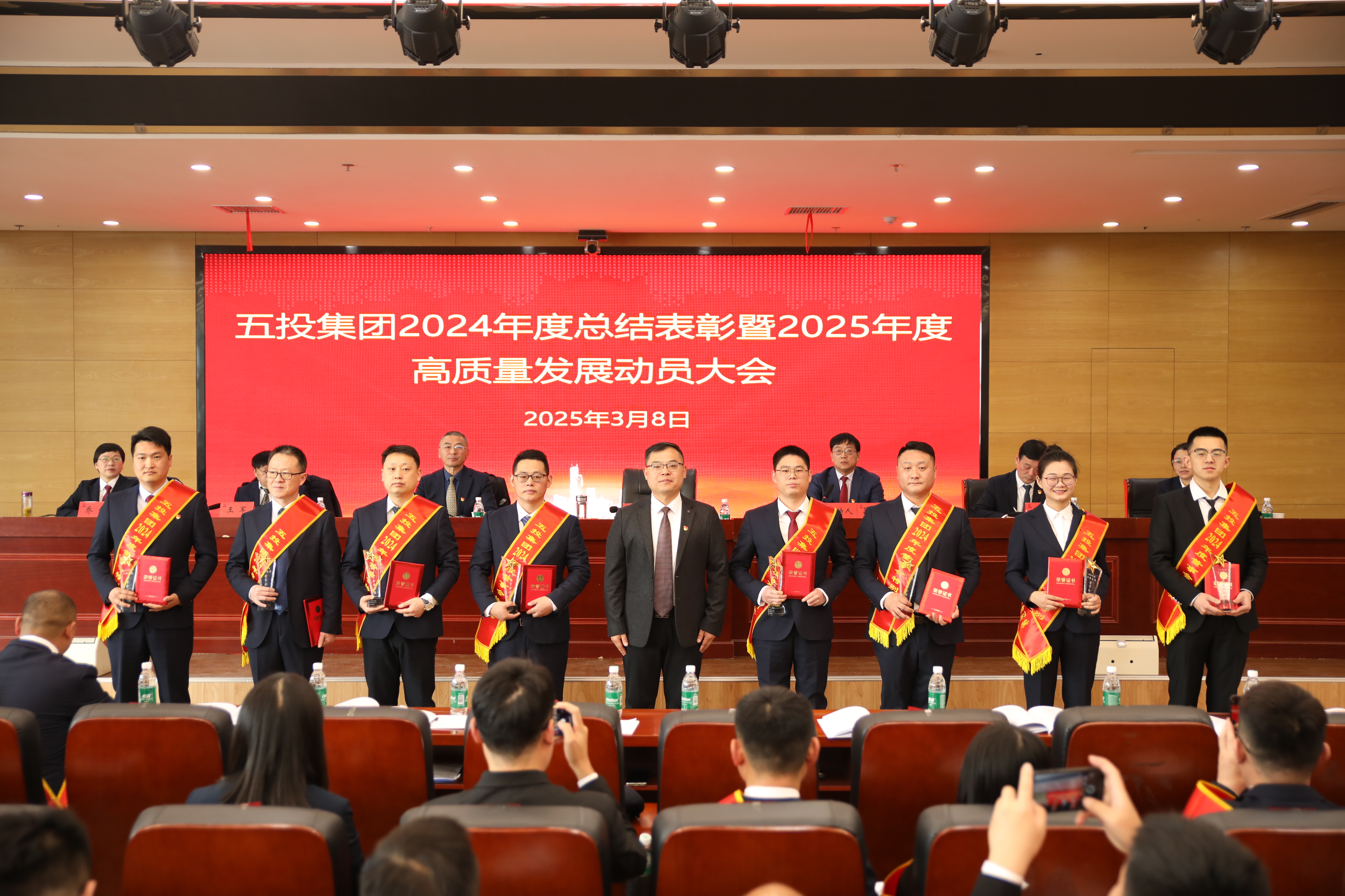 会上,集团公司董事、副总经理邓超同志传达了《中共蚌埠市委、蚌埠市人民政府关于表彰2024年度蚌埠市经济高质量发展贡献奖先进集体和先进个人的决定》以及《中共五河县委、五河县人民政府关于表彰五河县2024年度高质量发展先进集体和先进个人的决定》。集团公司党委委员、监事会主席陈全意同志接着宣读了《关于3044am永利集团2024年度评先评优工作获奖人员及团队的通知》,并进行了颁奖环节,表彰先进,树立榜样。