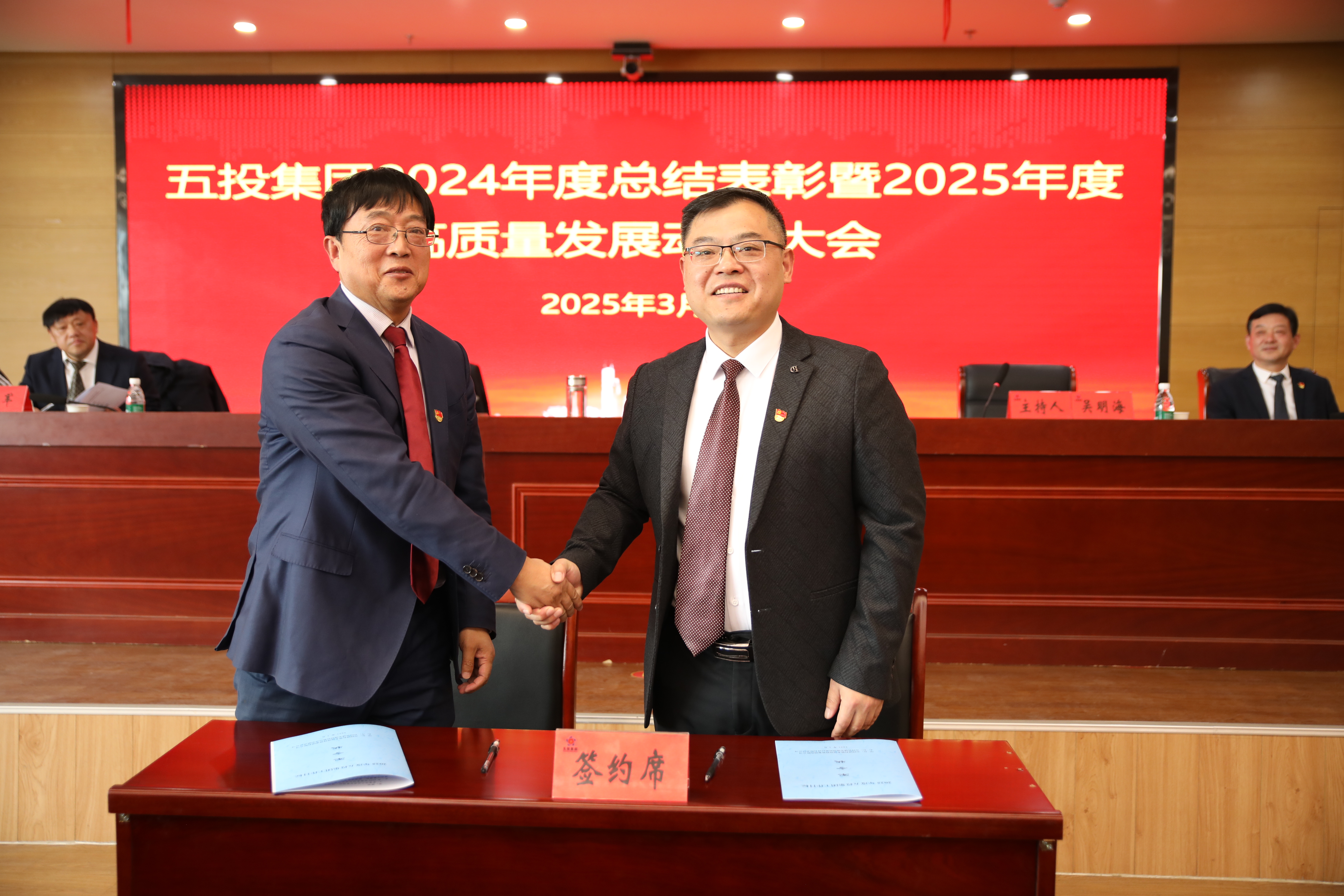 在签订2025年度工作目标《军令状》环节,集团公司党委书记、董事长、总经理姜义同志与各管理公司、职能中心签订工作目标《军令状》,各管理公司也与经营公司完成了工作目标《军令状》的签订,层层压实责任,确保任务落实。参股投资公司赢财牛公司和业务合作机构君合资本公司代表也在会上发言。