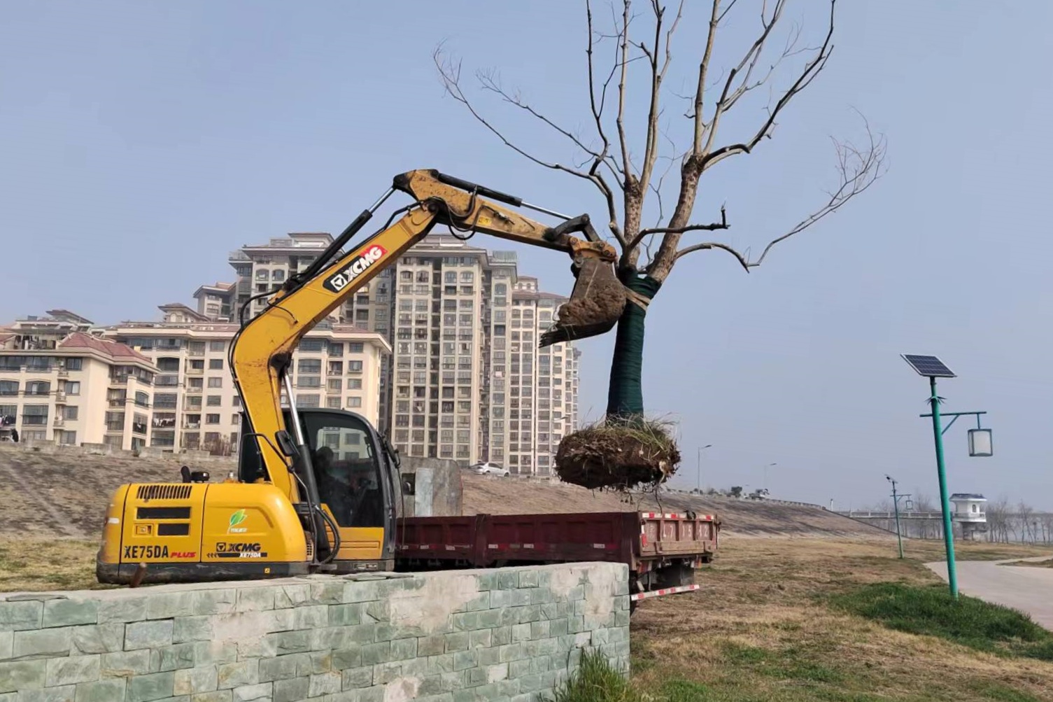 近日,公司组织多名工作人员,并调配挖掘机投入树木种植工作。挖掘机的运用,大幅提升树木种植效率与质量,精准保障树苗种植深度与角度。现场,工作人员分工明确、配合默契。在大家齐心协力下,一棵棵新树苗迎风挺立,宛如在向世人展现春天的美好与生机。本次共种植树木120余棵,这些新树苗不仅为公园增添盎然绿意,更为城市生态环境注入全新活力。