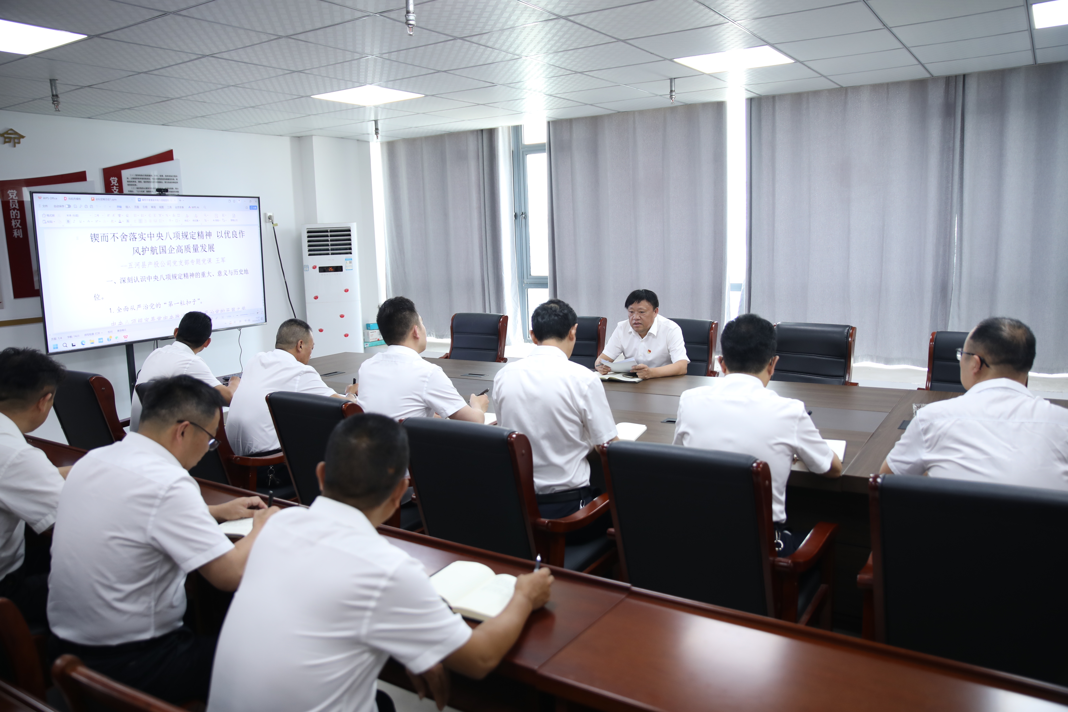 活动现场,党支部书记王军带领全体党员重温入党誓词。在随后开展的专题党课中,王军以"锲而不舍落实中央八项规定精神 以优良作风护航国企高质量发展"为主题,深入阐述了中央八项规定精神的重大意义和历史地位,系统解读了政策的核心要义和纪律红线,并结合典型案例进行了深刻剖析。