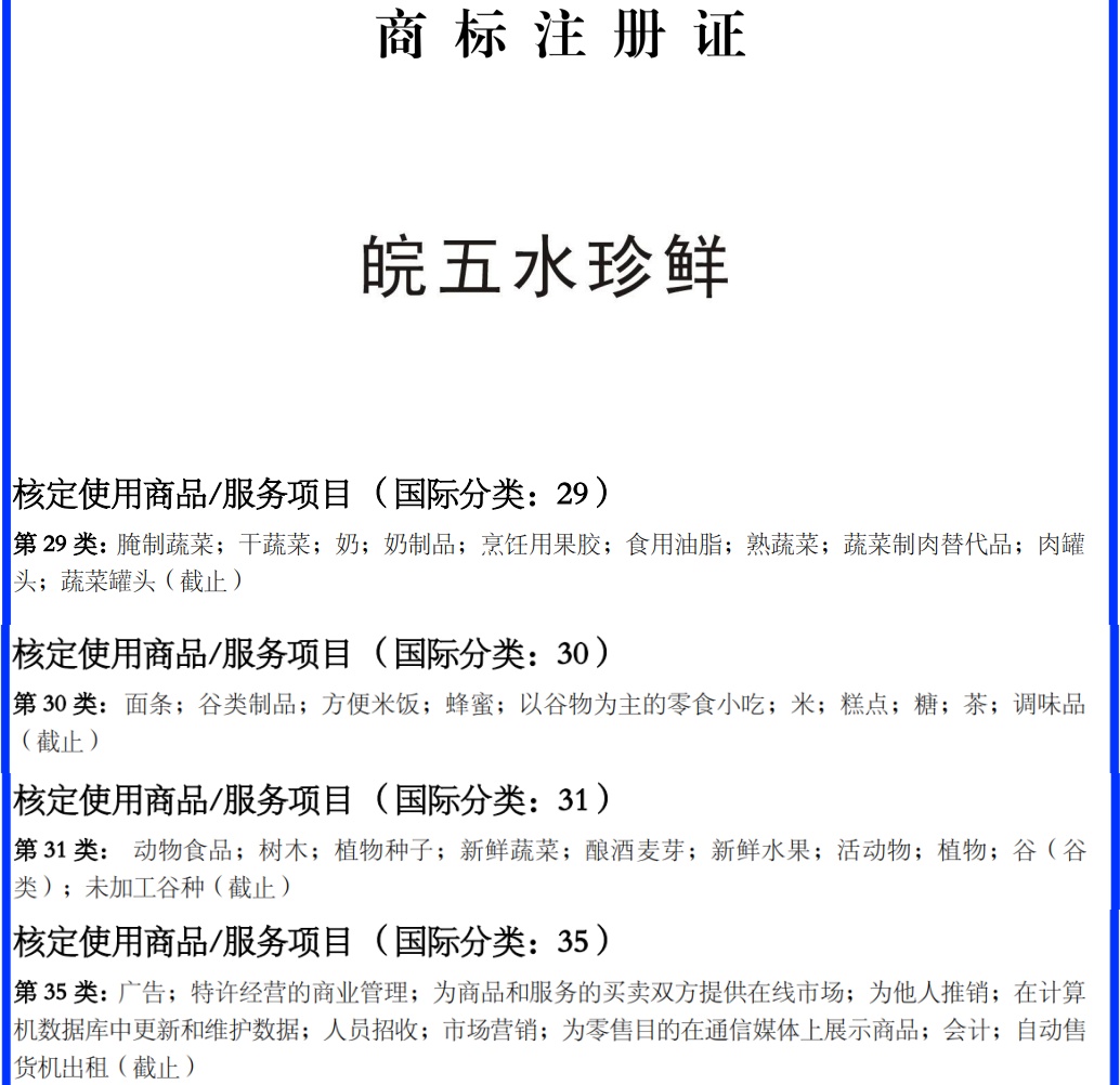 近日,3044am永利集团旗下徽虹农业公司已成功完成“皖五水珍鲜”系列4个商标及“五水珍鲜”商标的转让工作。此举是公司深度贯彻品牌化发展战略、提升五河特色农水产品核心竞争力的关键一步,标志着其在构建自主知识产权体系和打造区域特色品牌矩阵方面取得了实质性突破。