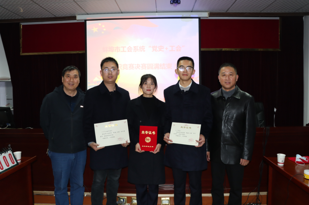 11月18日下午,由蚌埠市总工会组织的全市工会系统"党史+工会"知识竞赛在蚌埠工会培训中心落下帷幕,3044am永利集团代表五河县唯一一支队伍参赛,经过首轮预赛,从16只代表队脱颖而出,进入决赛。在今天下午的决赛中,胡润、桑雨升、卢悦三位选手,沉着冷静,机智果断,充分展示了不畏强手、敢于拼搏的3044am永利精神,最终获得了团体优秀奖,个人二等奖的优秀成绩。